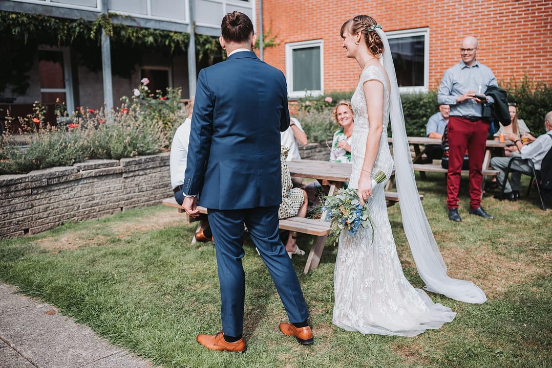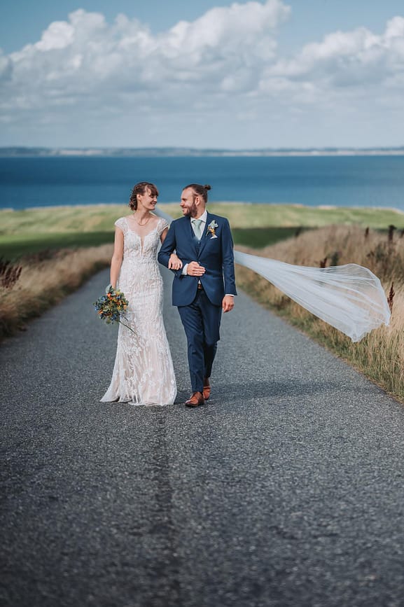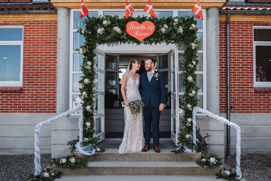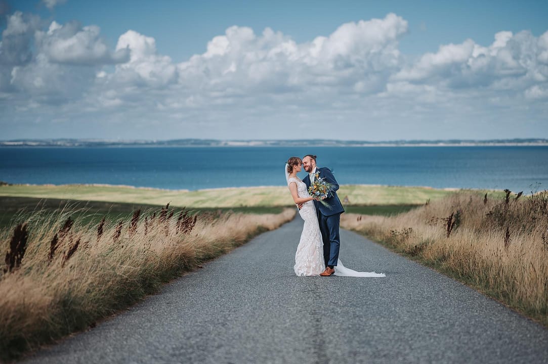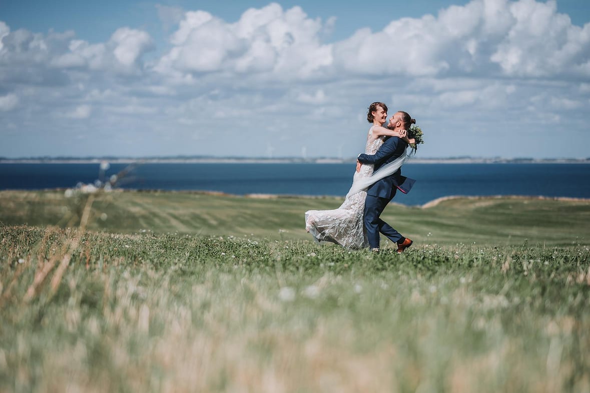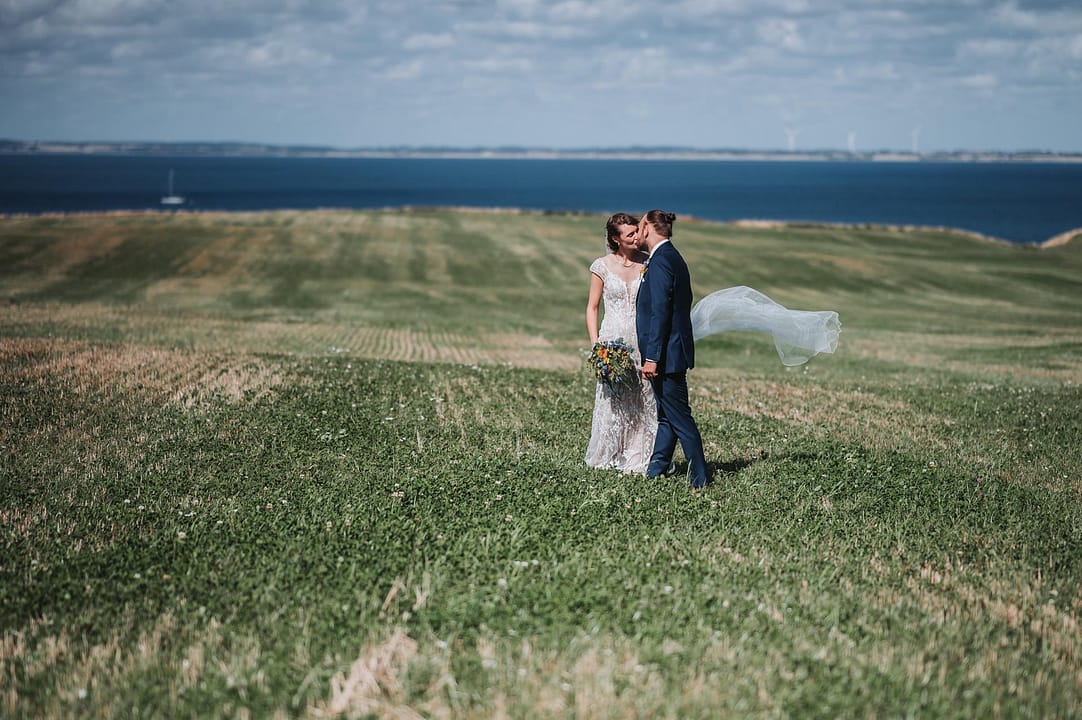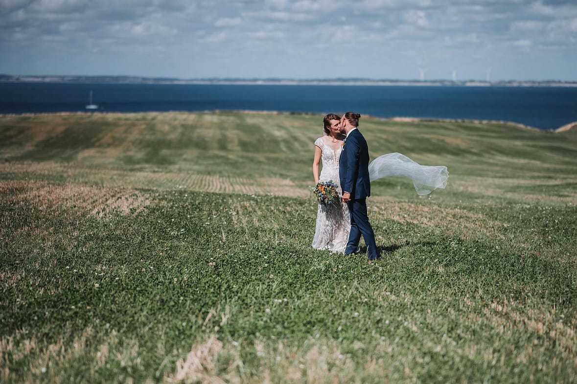 En smuk sensommer dag med masser af dejlige mennesker og smukke omgivelser. Vi startede ved stranden og tog nogle smukke bryllupsbilleder hvor vinden løftede sløret op og gjorde det hele lidt sjovere. Derefter var vi i den store have ved Nr. Nissum efterskole hvor festen også skulle holdes.